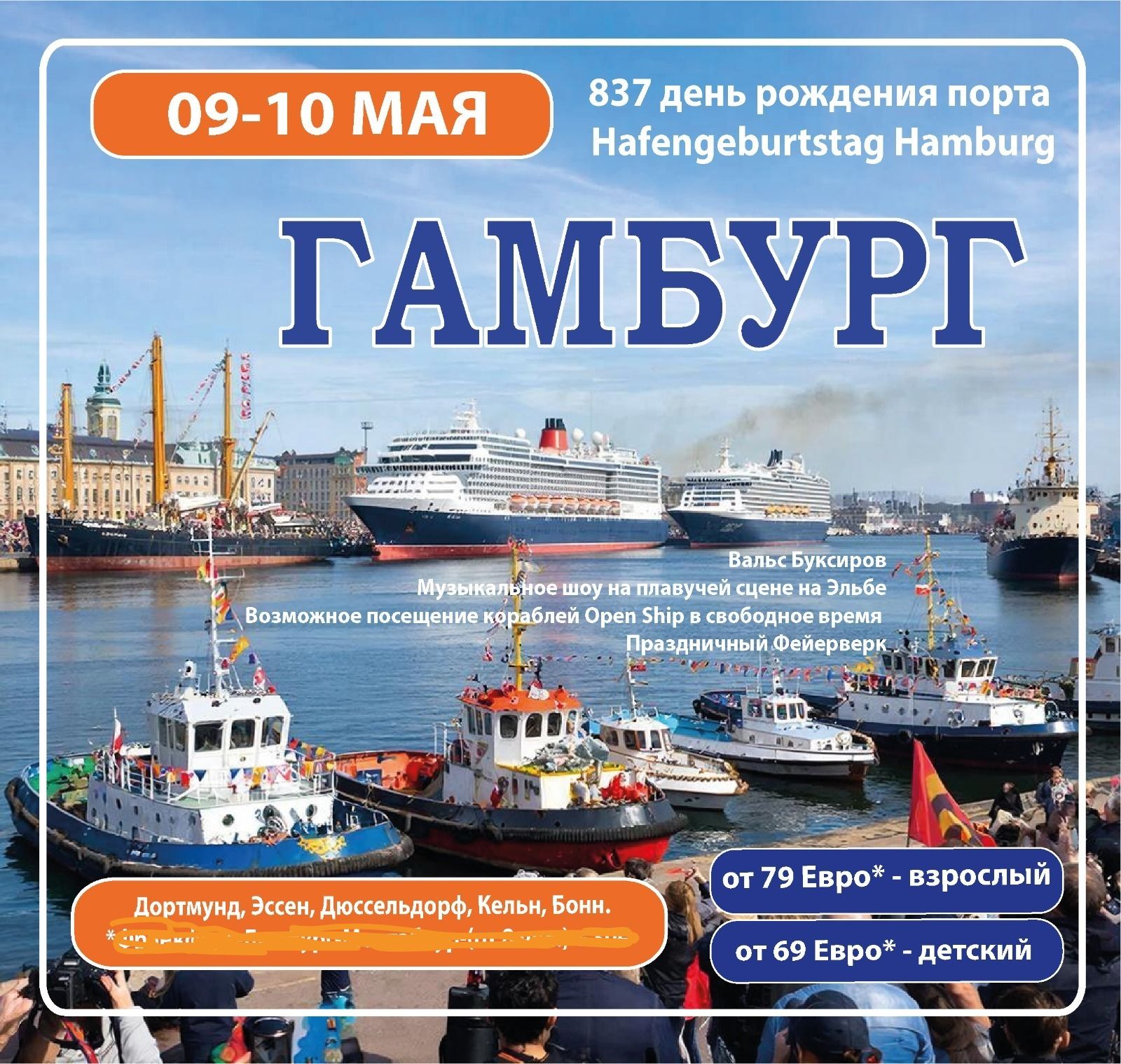 9 мая 2026 года мы приглашаем вас в эпицентр грандиозного события - 837-й День рождения Гамбургского порта (Hafengeburtstag Hamburg)!
